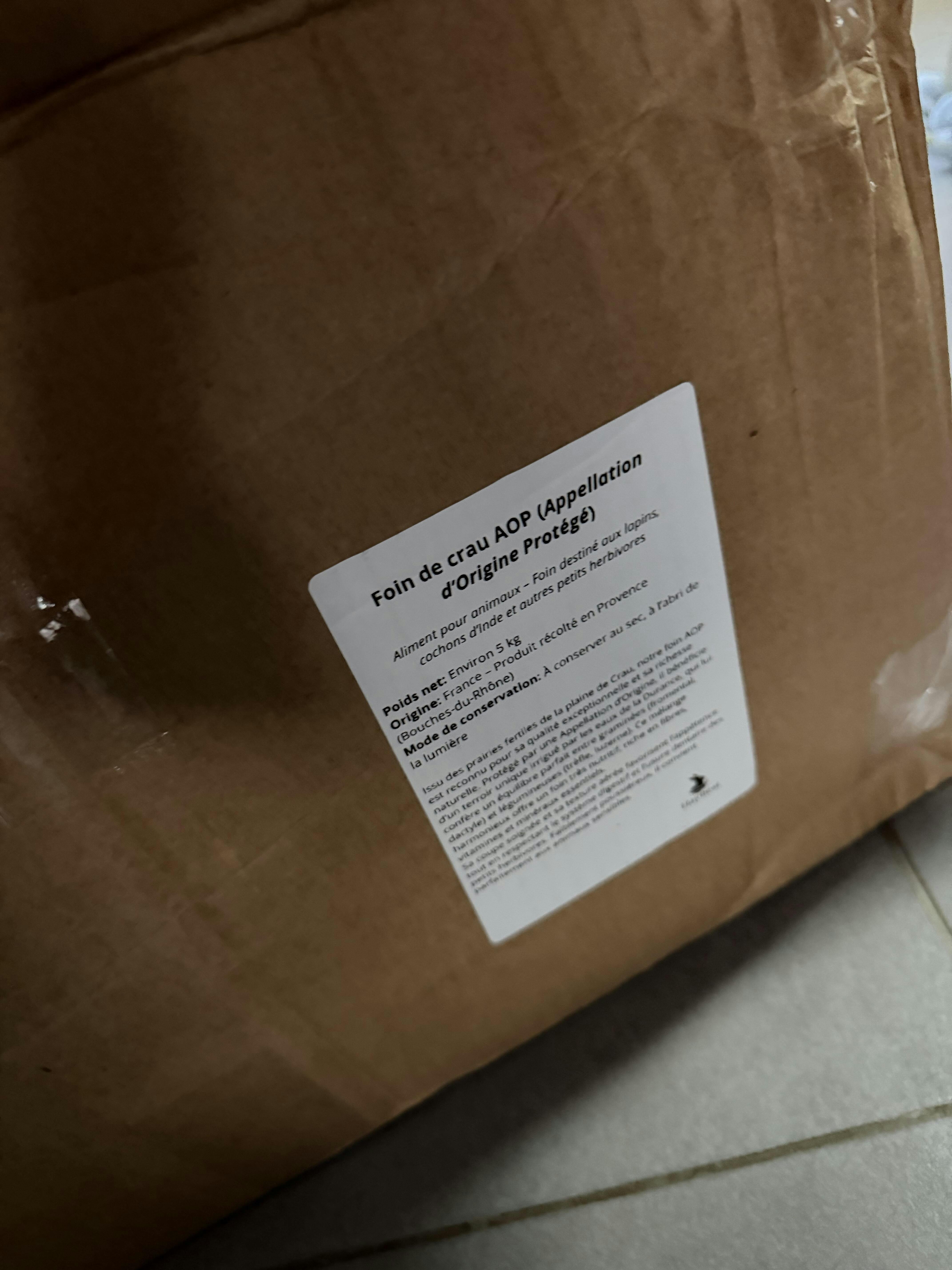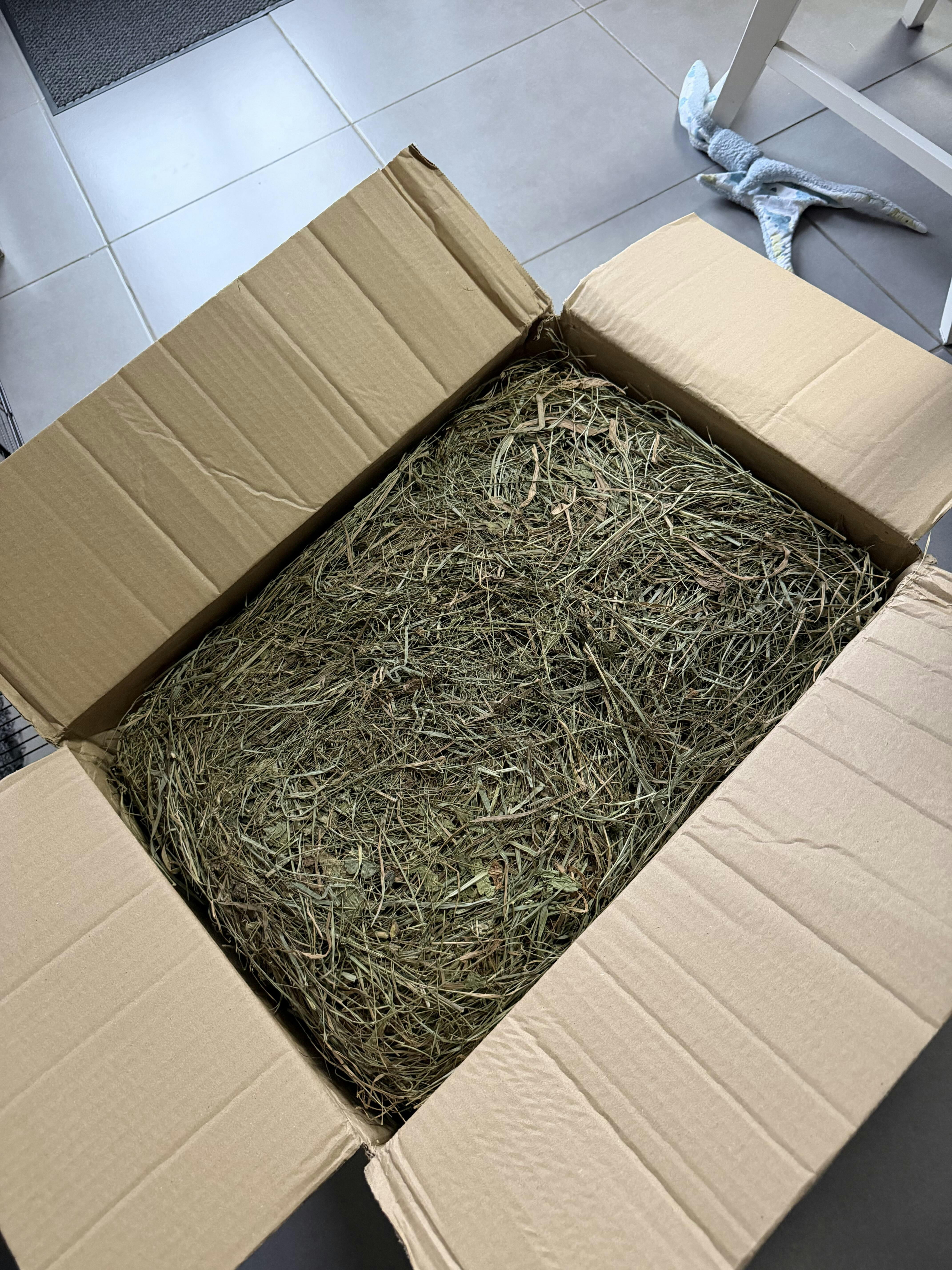 Très satisfaite de ma première commande. Facilité pour commander, envoi rapide, très bien emballé dans un carton sans surplus de plastique et publicités. Foin de qualité, très beaux brins, pas de petites miettes ou poussières, bien vert et odorant. Mon petit pinoux adore ! Je suis tellement content que je Vais opter pour l’abonnement afin de ne plus avoir à penser aux commandes de foin !